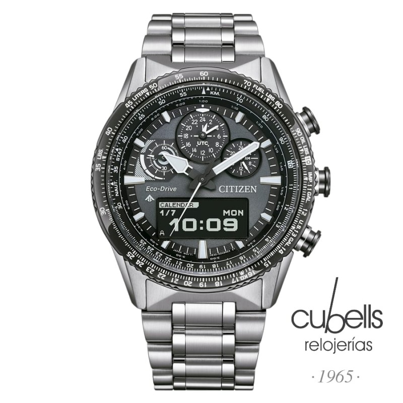 Citizen Eco Drive JV2006-55H de la colección Promaster. Multifunción, acero, cristal de zafiro y resistente WR 20 BAR. Diámetro de la caja 43 y peso 176 gr.